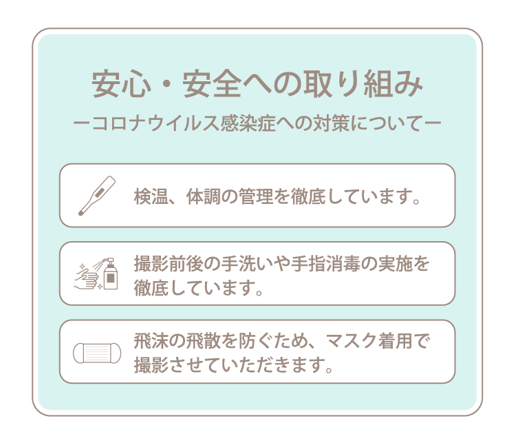 撮影を飾る小物はプランに合わせて、お持ち致しますが、エコー写真や、お客さまでご用意された小物など、ご要望に応じて撮影させていただきます。